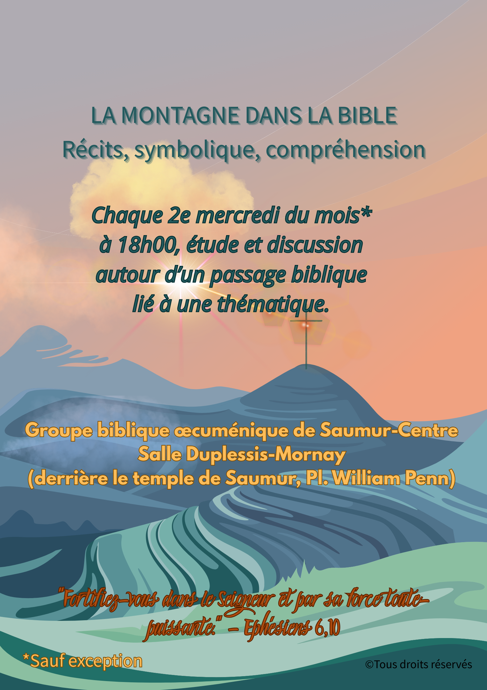 Programme 2025-2026 : « La montagne dans la Bible » – Explorer la montagne sous toutes ses facettes : que nous disent les récits bibliques sur le rapport de la montagne avec Dieu et l’humanité. Comment les expliciter.
